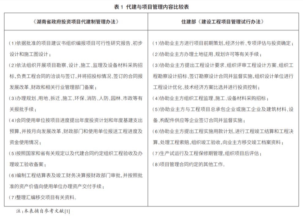 為貫徹2004年國務(wù)院發(fā)布的《關(guān)于投資體制改革的決定》精神,我國非經(jīng)營性政府投資項(xiàng)目已逐步形成了“政府專業(yè)機(jī)構(gòu)代建、政府專業(yè)代建公司代建和社會(huì)代建單位代建”三種主要模式。2007年,湖南省對社會(huì)代建項(xiàng)目作出明確規(guī)定,代建服務(wù)的業(yè)主包含政府職能部門和項(xiàng)目使用方,體現(xiàn)了政府職能部門(發(fā)改和財(cái)政等部門)對非經(jīng)營性政府投資項(xiàng)目的監(jiān)管,而且是可考核的工作。2007年住建部發(fā)布的《建設(shè)工程項(xiàng)目管理試行辦法》明確了為業(yè)主服務(wù)的項(xiàng)目管理內(nèi)容(表1),是以“協(xié)助”為主的服務(wù),這在當(dāng)時(shí)為推進(jìn)我國項(xiàng)目管理發(fā)展是必要的。目前,從效果考核的角度看,除了有部分是代理業(yè)主履行并可考核的工作外,大多的“協(xié)助”工作涉及到與業(yè)主的相互配合,服務(wù)效果難以考核。不能考核的工作要想得到業(yè)主和社會(huì)的認(rèn)可是困難的,這也是截至目前無法出臺(tái)全國性的工程項(xiàng)目管理服務(wù)酬金標(biāo)準(zhǔn)的原因之一。