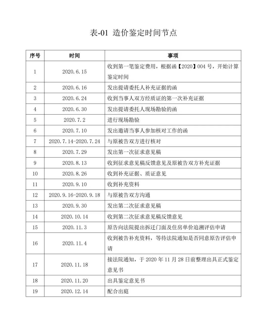 案例項目于2020年7月10日通過法院向當事人發出邀請參加核對的函件,隨即分別與原、被告雙方核對,在核對過程中充分征求當事人的意見,理清雙方爭議點,核對過程中從專業角度促使雙方當事人就部分事項達成一致,并簽署書面意見,在減少爭議的同時,也為后續征求意見稿的撰寫打下了基礎。