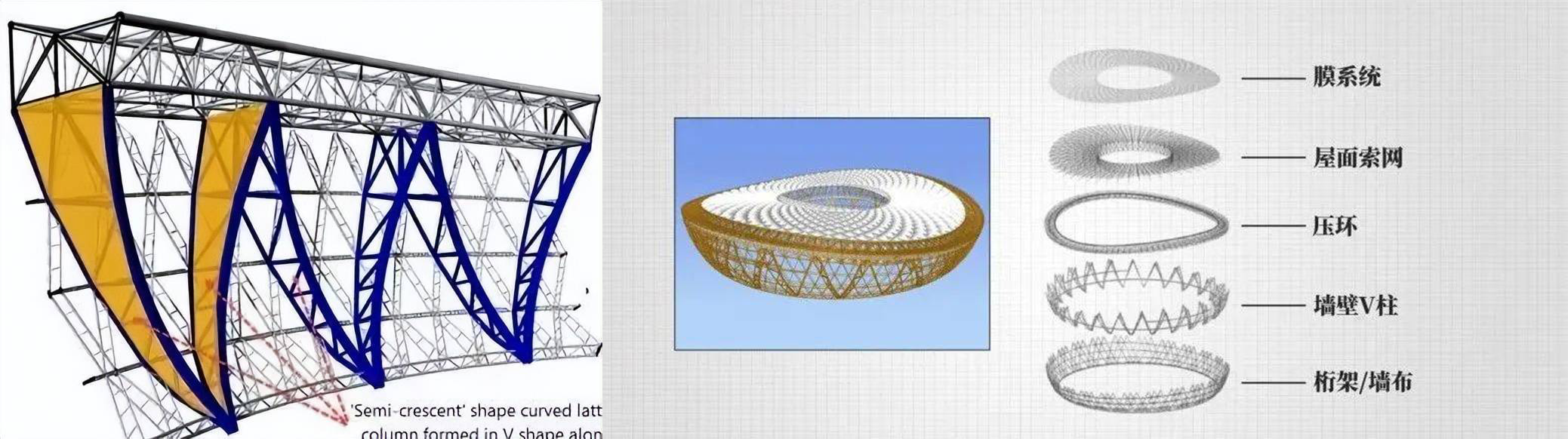 盧賽爾體育館是全球最大跨度雙層交叉索網(wǎng)屋面單體建筑,并且有著世界上最復雜的索膜結構體系,屋面索網(wǎng)結構跨度達274米,鋼結構高空吊裝最大的單體重達450噸,懸挑距離為76米,項目包含30多個專業(yè)大類,45個專項設計,99個電子系統(tǒng),可以說是目前為止專業(yè)接口最多、技術最先進的體育場館。
