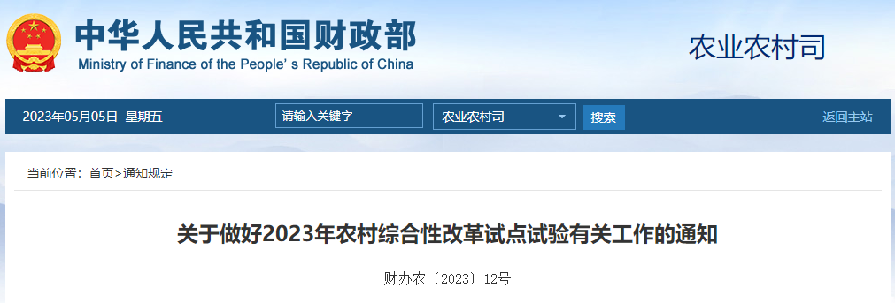 為深入貫徹黨的二十大精神,認(rèn)真落實(shí)2023年中央一號文件“深化農(nóng)村改革”、“深入推進(jìn)農(nóng)村綜合改革試點(diǎn)示范”的任務(wù)要求和中共中央、國務(wù)院印發(fā)的《數(shù)字中國建設(shè)整體布局規(guī)劃》部署,在總結(jié)前期試點(diǎn)經(jīng)驗(yàn)的基礎(chǔ)上,2023年中央財(cái)政繼續(xù)支持實(shí)施并啟動(dòng)新的農(nóng)村綜合性改革試點(diǎn)試驗(yàn)(以下簡稱試點(diǎn))。現(xiàn)就有關(guān)工作通知如下。