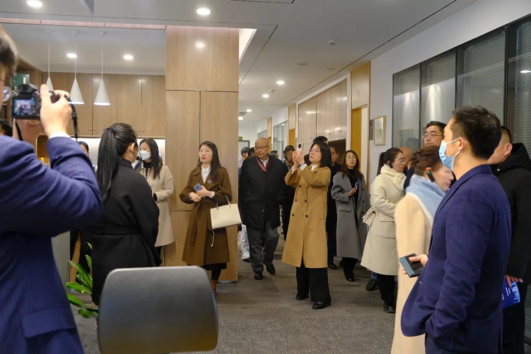 王董陪同尹教授一行參觀了鼎正第一辦公空間、第二辦公空間,并詳細介紹了鼎正的企業文化、發展戰略、業務模塊,與會代表對鼎正“顏值”連連稱贊道“這里辦公氛圍太舒服了”!