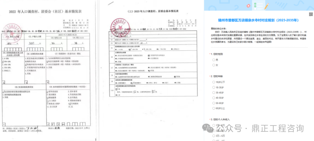 一方面,通過制定村莊基礎資料調查表、調查問卷,向村委及村民收集資料,充分掌握規劃范圍內的自然資源狀況、人口狀況、土地利用、各類基礎設施建設、產業發展和社會經濟發展等基礎資料。