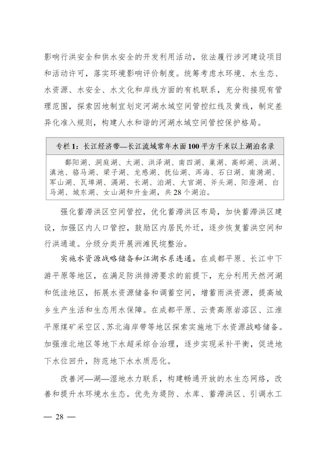 加快蓄滯洪區工程與安全建設,強化蓄滯洪區土地利用、產業引導、人口規模管控。開展洲灘民垸分類治理。充分考慮氣候變化引發的極端天氣影響和防洪形勢變化,科學提高長江流域防洪工程標準。支持水庫群等水工程聯合調度,發揮防洪工程體系整體優勢。