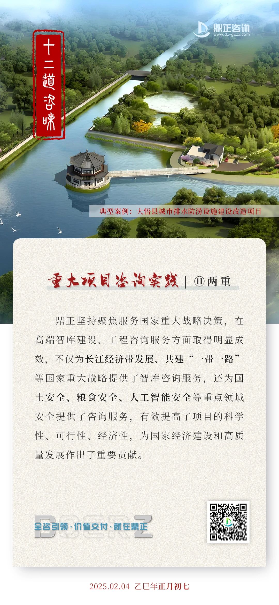 鼎正憑借其豐富的行業(yè)經(jīng)驗和專業(yè)團隊,在“兩重兩新”重大項目領(lǐng)域積累了大量的成功案例。在水利水電及交通運輸方面,鼎正積極參與多項國家級重點工程的前期論證工作,確保設(shè)計方案既符合經(jīng)濟效益又兼顧生態(tài)環(huán)保要求;在應(yīng)急管理方面,鼎正參與了多個應(yīng)急管理系統(tǒng)項目,如城市防洪排澇系統(tǒng)等。此外,鼎正在建筑領(lǐng)域也開展了多項設(shè)備更新項目,如水污染治理設(shè)施提標改造等。