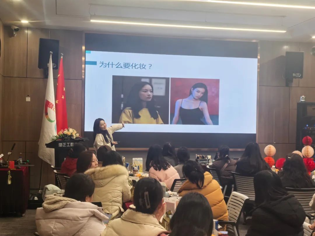 3月6日下午,鼎正為每一位女神精心準備了一場專屬儀式——“從容出發(fā),妝點自己”主題美妝課堂。在專業(yè)美妝老師的指導下,她們暫時放下手中的工作,拿起彩妝畫筆,開始勾勒屬于自己的高光時刻。她們在工程圖紙與化妝刷之間切換,尋找更好的自己,用美麗綻放詮釋事業(yè)與美的雙重進階。