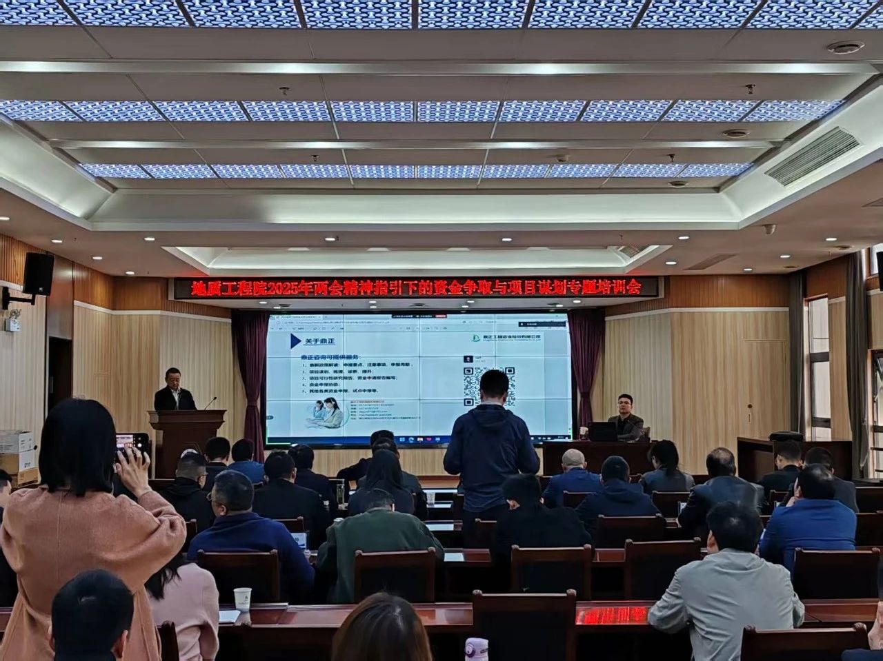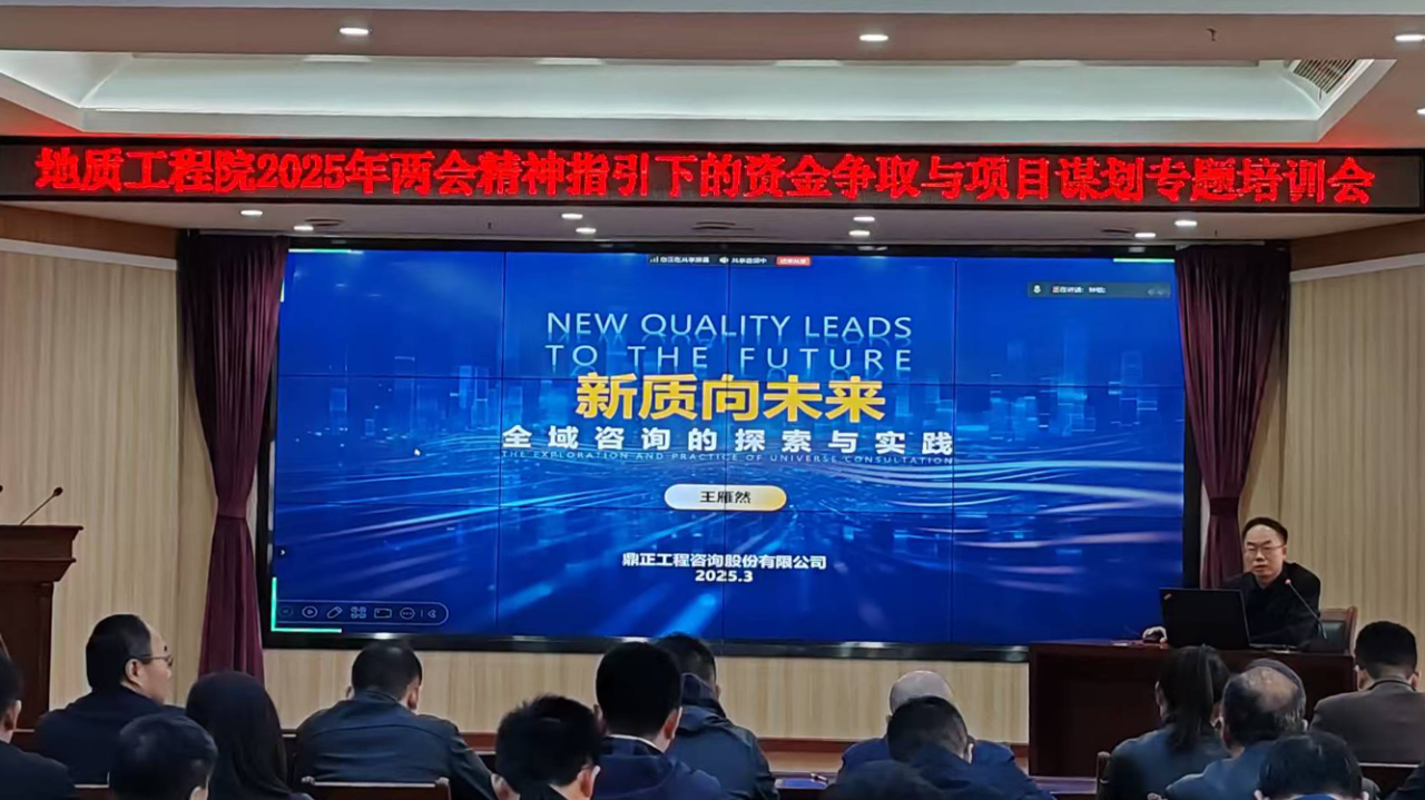 4月2日上午,湖北省城市地質工程院組織召開“2025年兩會精神指引下的資金爭取與項目謀劃專題培訓會議”,鼎正董事長王雁然、副總經理彭亮受邀擔任主講嘉賓,并作專題培訓交流。