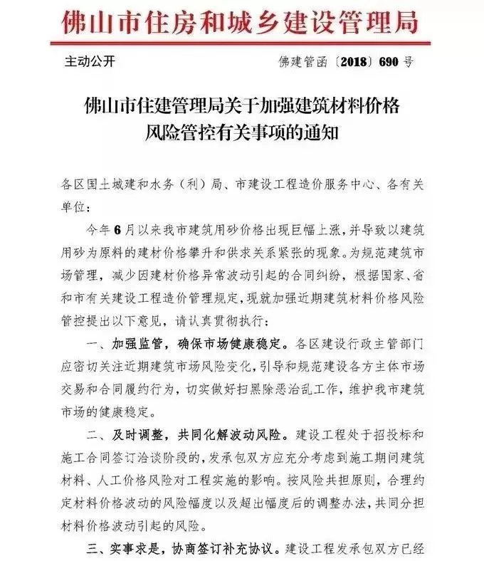 2018年1月30日,濟南市住建委印發(fā)《關于加強工程建設材料價格風險控制有關事項的通知》(濟建標字〔2018〕2號),明確工程計價中應推行風險共擔和合理分攤原則,承包人應有限度承擔材料價格等市場風險。
