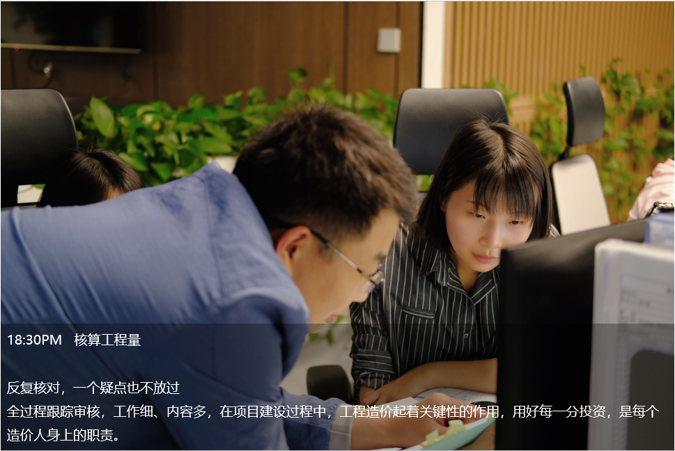 晚上7點,造價部同事還在計算工程量。內(nèi)墻工程量是不是漏算了?混凝土類型是不是用錯了?他們邊檢查邊計算,用嚴謹?shù)墓ぷ鲬B(tài)度,扎實的專業(yè)技能,細致的服務理念,一次又一次贏得客戶的信賴。