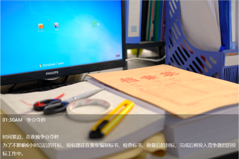 凌晨1點,投標部毓兒還在趕標書,這是她這個月第五份標書,已經(jīng)連續(xù)熬了四個晚上。她說:“對于投標人說,有一大半的標書,都是在半夜里完成的。尤其是臨近開標的前兩天,基本都會加班到很晚。”