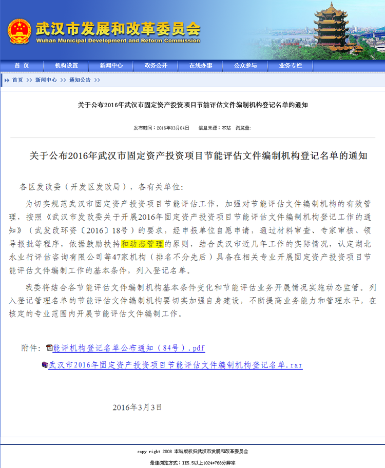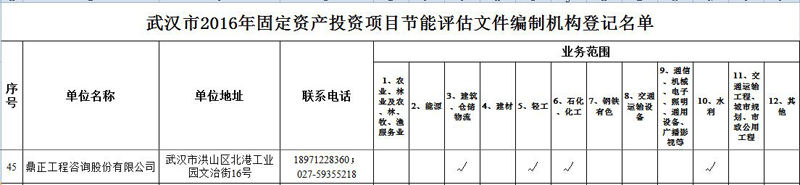 【經營成果】我司入選2016年武漢市固定資產投資項目節能評估文件編制機構登記名單