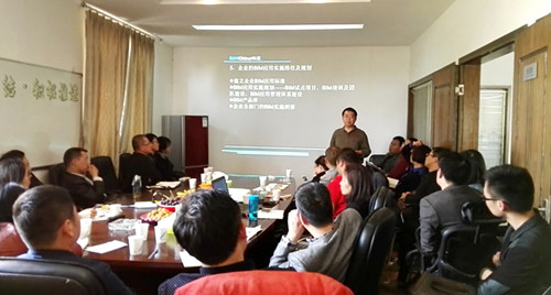 出席本次會議的還有武漢市造價協會汪國剛會長、湖北省造價協會湯志芳主任、武漢市造價協會張智學副會長、中國建設銀行湖北省分行造價咨詢中心副總經理趙丹暉女士、中國國際工程造價咨詢有限公司湖北分公司副總經理陳文軍先生等20多家設計、業主、咨詢單位領導和BIM應用專業人員約30余人到場,黃亞斌先生從國內外BIM應用現狀切入主題,就BIM應用價值點、應用關鍵點問題展開演講,提出BIM應用的關鍵點是必須建立一套標準化的體系,而BIM人才的培養和BIM團隊的建設是重中之重,并提出了制定BIM應用標準和BIM人才培養合作的解決方案。