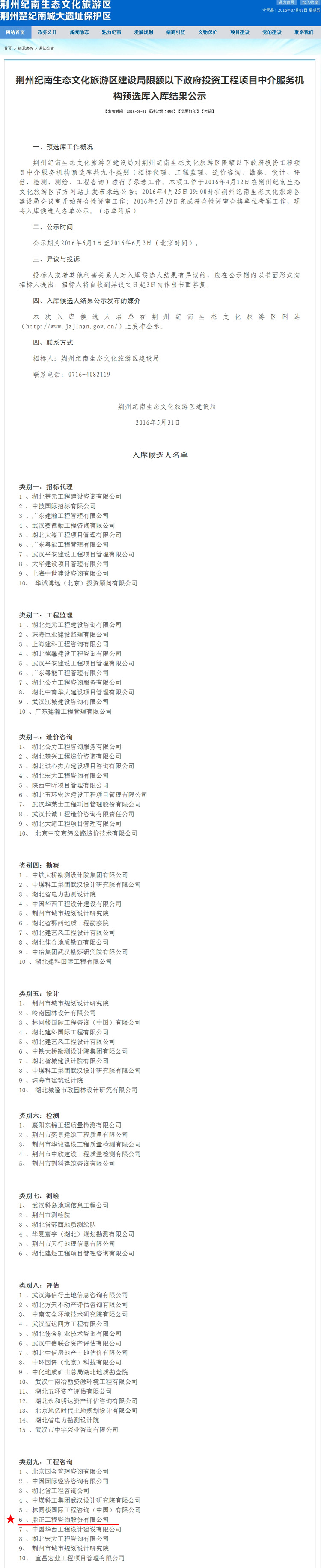 【經(jīng)營成果】我司入圍荊州紀南生態(tài)文化旅游區(qū)建設局限額以下政府投資工程項目中介服務機構預選庫