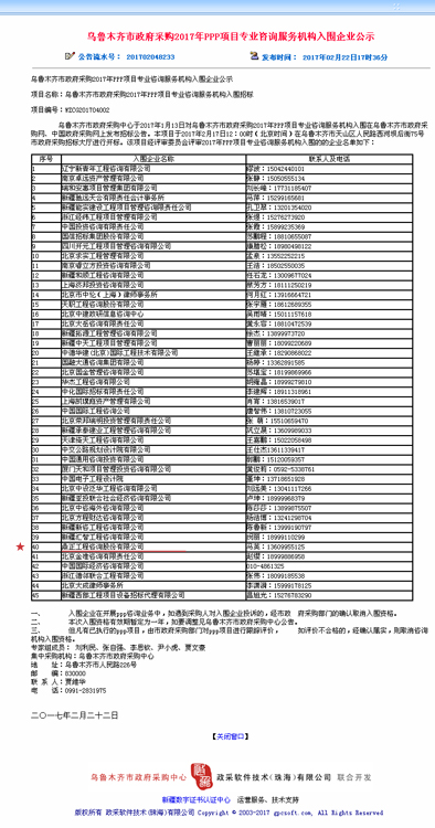 【經(jīng)營(yíng)成果】我司成功入圍烏魯木齊市政府采購(gòu)2017年P(guān)PP項(xiàng)目專(zhuān)業(yè)咨詢(xún)服務(wù)機(jī)構(gòu)庫(kù)