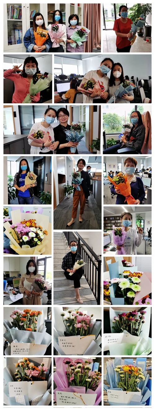 母親節的前一天,公司給每位鼎正的職場媽媽們送上鮮花祝福,讓這個母親節充滿溫馨,更具儀式感。全體“鼎正媽媽”的歡顏笑語,把這份芬芳美麗也傳遞給了每位鼎正人。